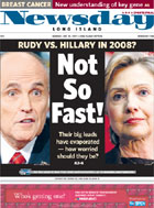 Daily News Rivals Clinton and Giuliani feeling the heat: Clinton is still the front-runner, but she's sputtering in national and state polls - a dilemma now shared by her nemesis, Rudy Giuliani, on the Republican side, who is trying to withstand a surge by former Arkansas Gov. Mike Huckabee. And that has observers wondering if the front-running New Yorkers are experiencing potentially fatal reversals of fortune - or just some last-minute buyer's remorse from the party faithful. | ![]() | |